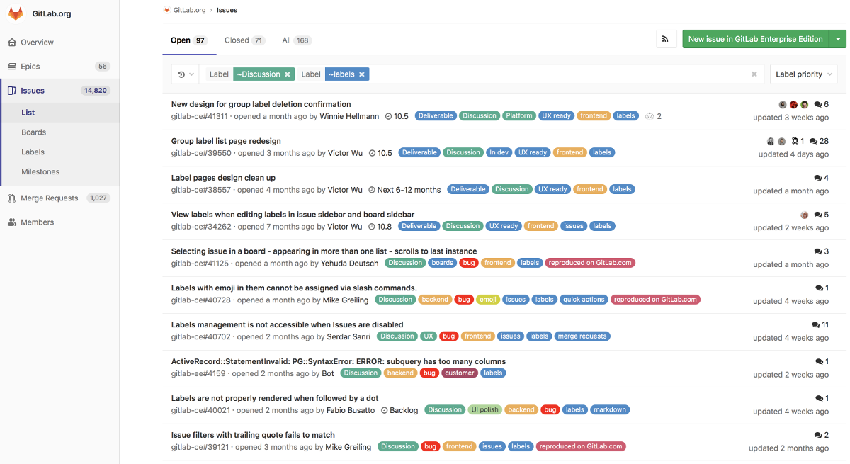 Filtering issues and merge requests by label